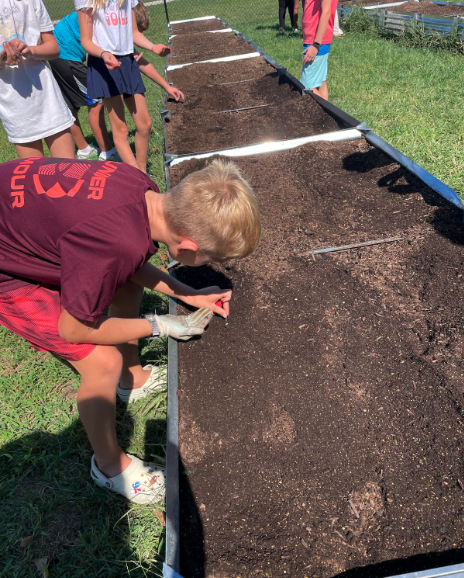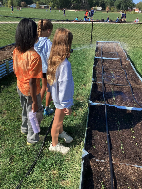 The students take care of the garden; they grow and water the vegetables, and they also harvest each vegetable. If you have ever gone to the playground with your friends and/or your kids, in the back there is a small garden with two rows.