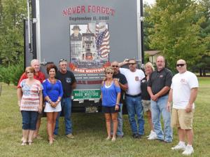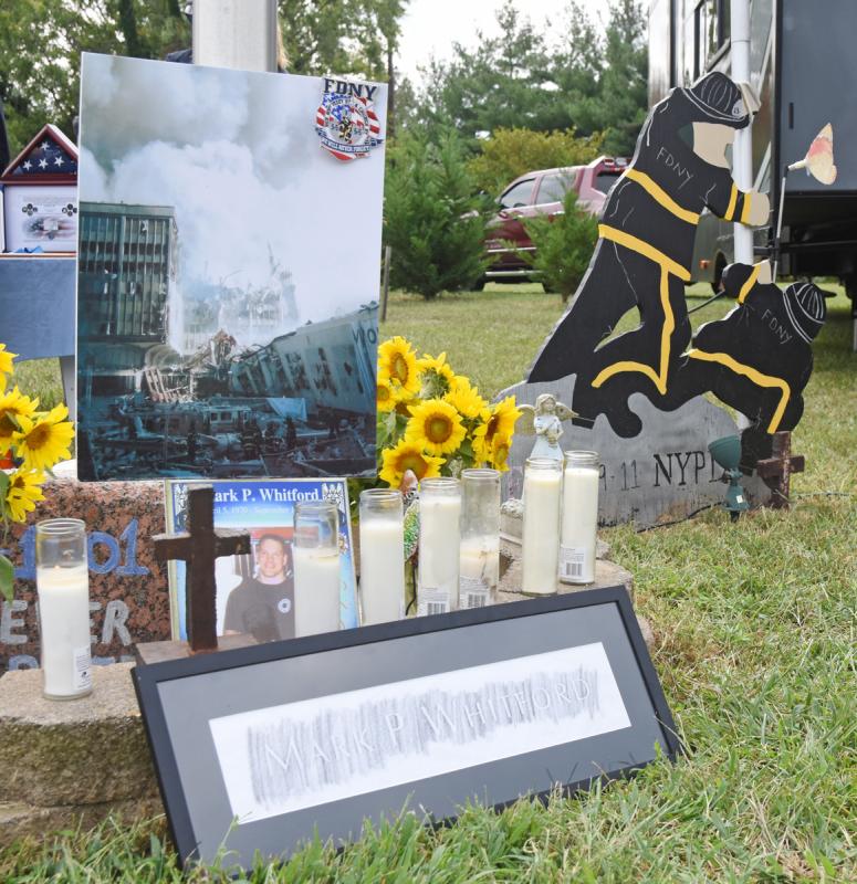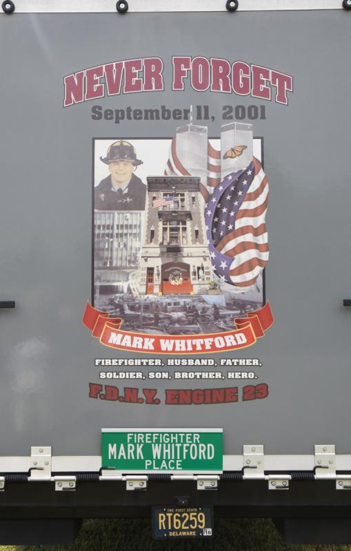 Mark was one of 343 firefighters to lose their lives that fateful day. Fifteen years later, Chris and the Whitford family continue to honor their heroic brother and son. On Sunday, the Lewes Fire Department held a short ceremony at the home of Roger and Carol Whitford, Chris and Mark's parents, where they have created a 9/11 memorial. The memorial includes a flagpole surrounded by candles, a photograph of Mark and flowers. On Sunday, Chris, who now lives in Georgetown, parked his RV beside the memorial. On the back is a mural honoring his brother, featuring a photo of Mark, his FDNY station, a flag wrapped around the Twin Towers and the words Never Forget. The mural also features a butterfly, referring to the moment Chris knew his brother didn't make it.