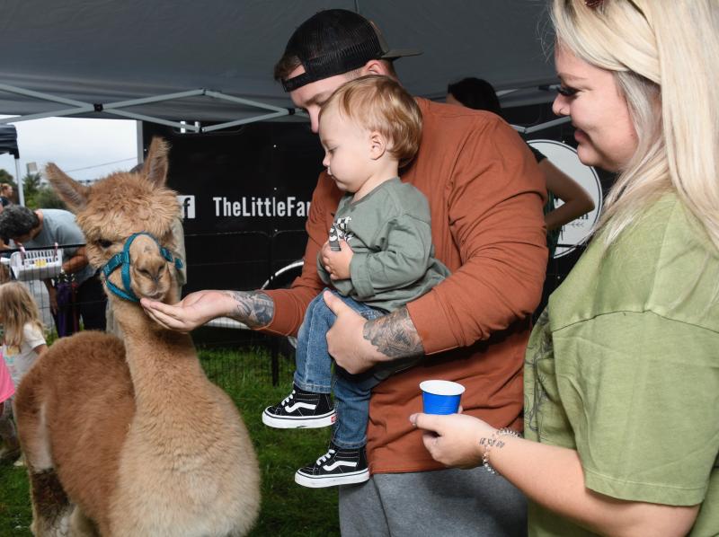 Ridge Teel, 15 months old, gets some help feeding The Little Farm’s alpaca from dad Dane and mom Melissa. The family lives in Millsboro.