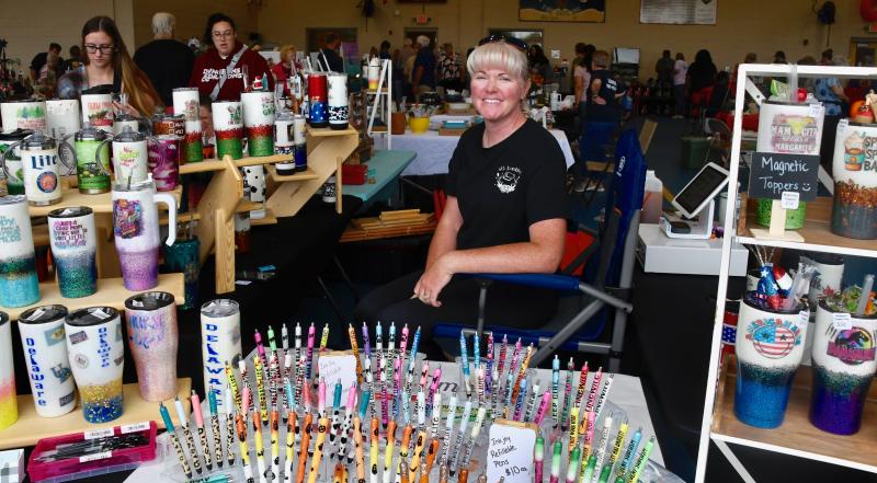 Kristi Gray of KG Tumblers DE, based in Slaughter Beach, has several tables full of her handiwork. She was one of dozens of vendors taking part in the event.