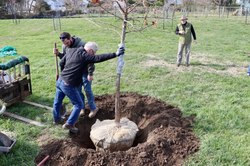 Landscapers placed the official Lewes semiquincentennial tree in Stango Park March 25.