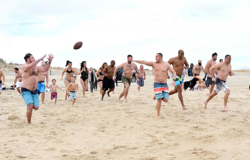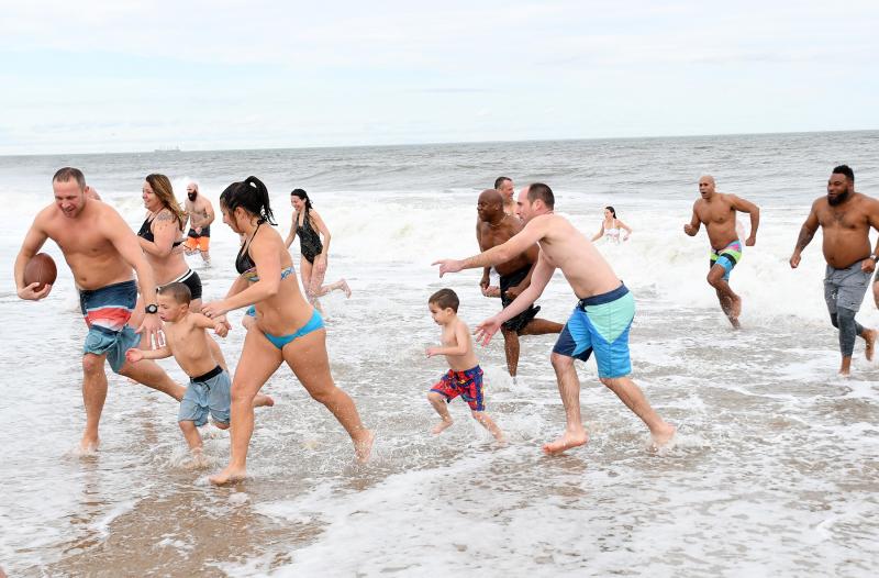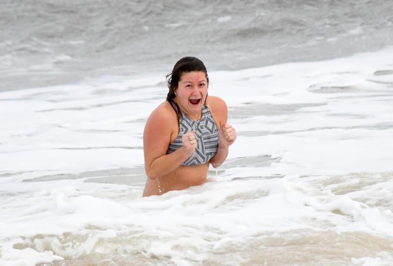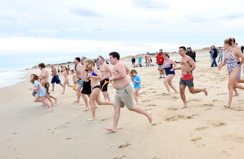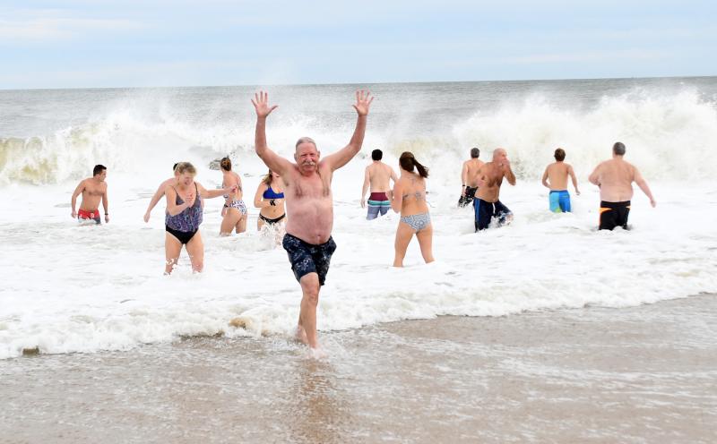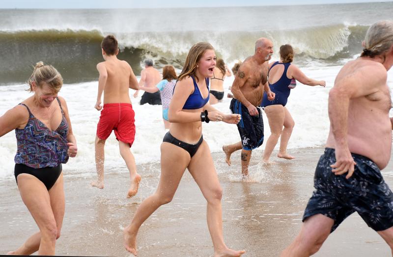Nearly 70 people took advantage of the 60 degree weather and celebrated the new year with a 2019 plunge into the Atlantic Ocean at Cape Henlopen State Park.