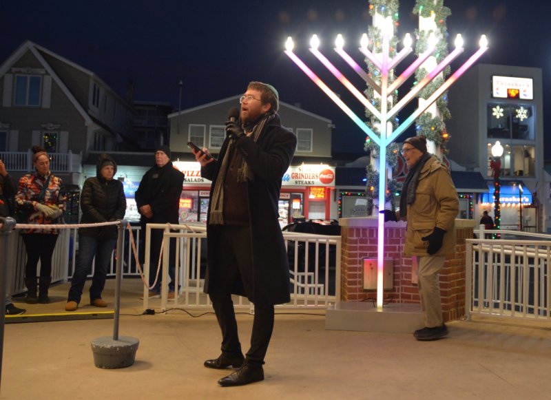 Members of the local Jewish community gathered at the Rehoboth Beach Bandstand Dec. 21, to celebrate the end of Hanukkah with a ceremonial lighting of a giant menorah.