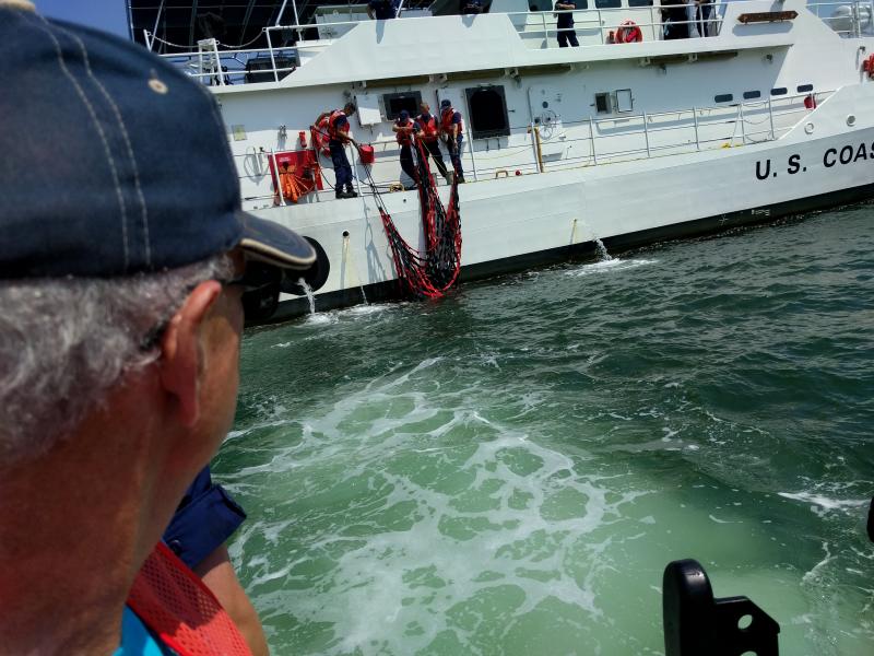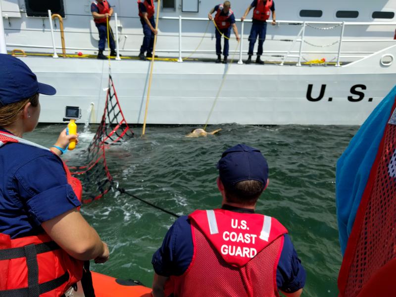 The crew contacted Lewes-based Marine Education, Research & Rehabilitation Institute and arranged to pick them up in a deployable boat, while Coast Guard Station Cape May brought members of the Sea Turtle Recovery to the ship.