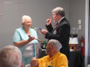 Special awards presentations included recognition of longtime Lord Baltimore Lions member and Past District Gov. Dr. Charlie Hudson on his 50 years of service with the club. In special recognition for service during the past year, outgoing President PDG Karl Gude presented the Lord Baltimore Lions Club Lion of the Year Award to co-recipients Kathy Brannan and Scott Brannan.