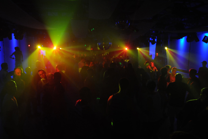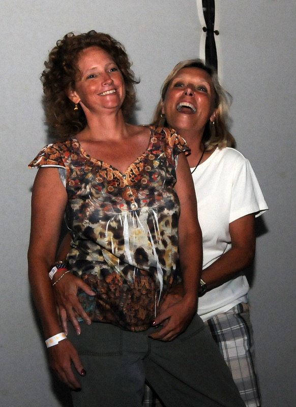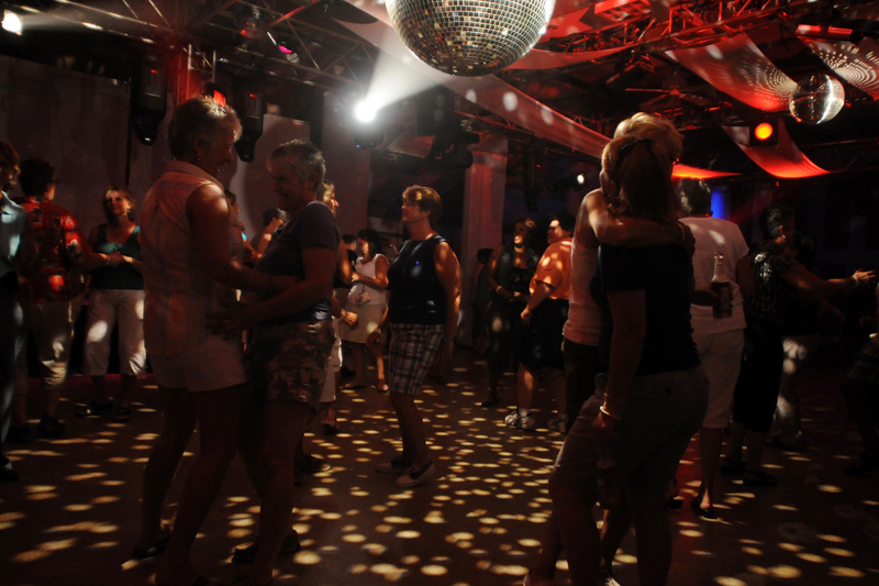 Max Dick, left, and Bob Hoffer enjoy the music and light show at the Love 2011 Dance Weekend.