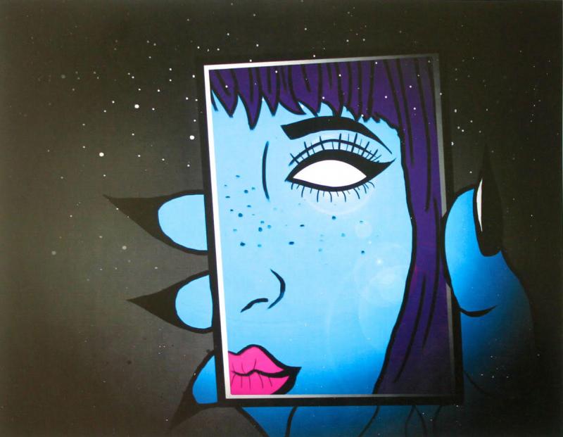 Prints and buttons of her digital art, such as "Mirror Mirror," are also available at the comic and collectible shop through April.