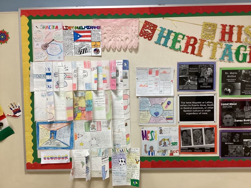 To share knowledge about the rich histories, traditions and contributions of Hispanic and Latinx communities, students designed informative one-page documents and brochures, which are displayed on the bulletin boards throughout the school.