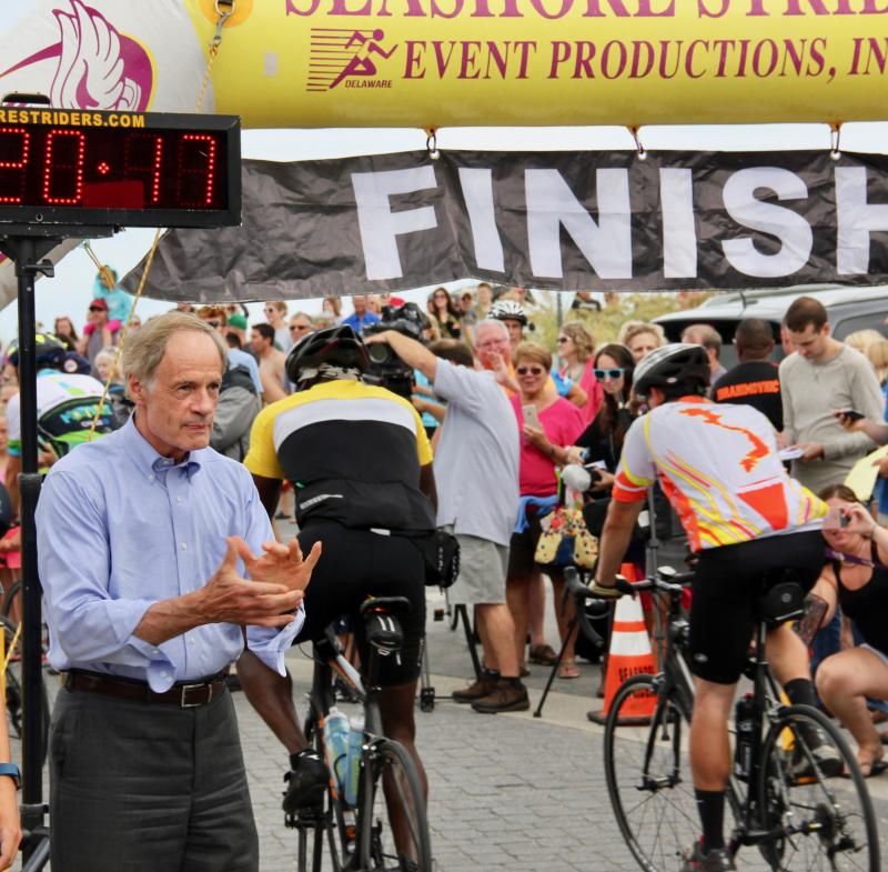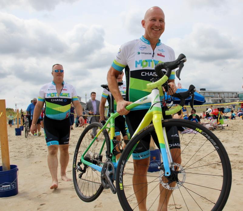 Former Gov. Jack Markell completed a cross-country bicycle ride Aug. 8 by riding south through Delaware and dipping his tire in the Atlantic Ocean in Rehoboth Beach.