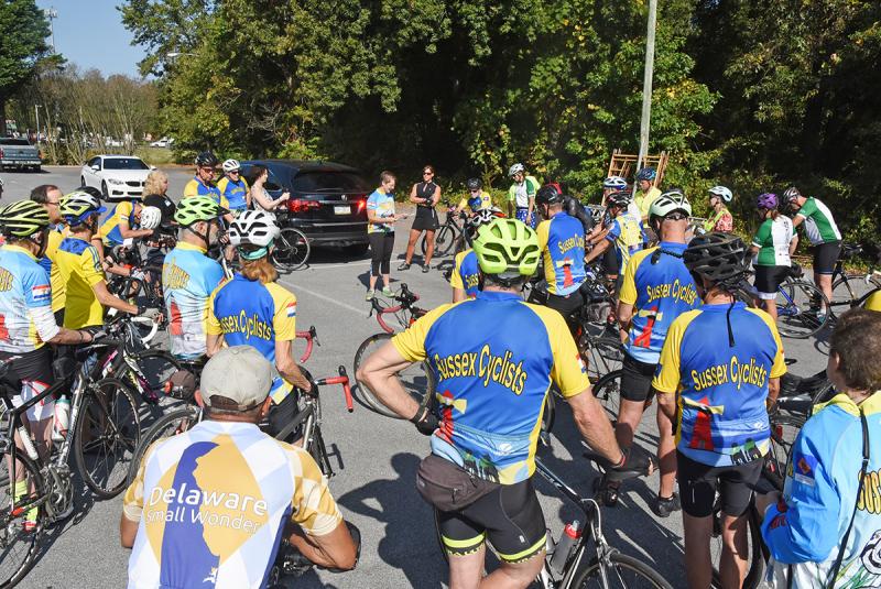 A group of cyclists gathered outside Melson Funeral Home in Long Neck Oct. 1 to participate in a celebration of life ride for Lloyd “Jay” Kirby Jr. before his funeral service.