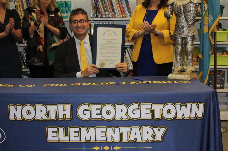 Gov. Matt Meyer rolled up to North Georgetown Elementary School Sept. 22 just like he did during his teaching years, but this time with a laser focus on literacy.