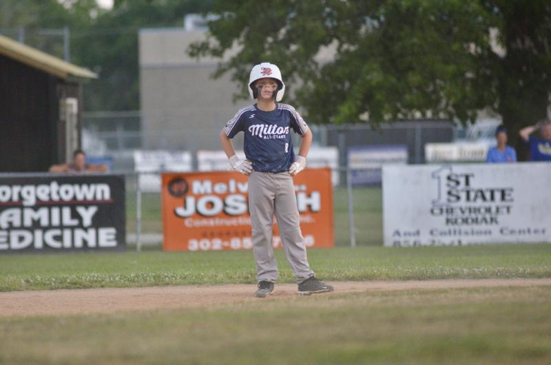 Taking the two runs he gave up to heart, Hartstein willed his way into scoring position after a hot shot to first base allowed him to reach. During Bryce Delacy’s at-bat that led to a walk, Hartstein advanced to third on a pair of passed balls. Wyatt Dean was intentionally walked to load the bases for Krew Johnson, who had the game-winning hit in Milton’s July 2 win over Lewes.