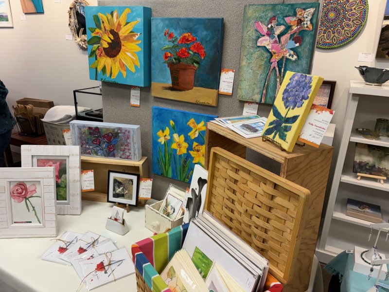 The guild held its second Sip N’ Shop March 27 as part of Spring Fling, allowing visitors to have a glass of wine and refreshments while browsing the market. The Sip N’ Shop also included music by Wanda Russell. Visitors could also browse works as part of the guild’s ongoing Curves art show.