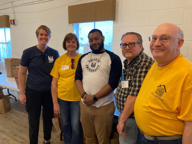 Two of the on-the-ground personnel from Unite Us, Demetrius Frazier and Lindsay Hebert, were at the pantry’s May 16 food distribution to see the pantry in action and hand out meals.