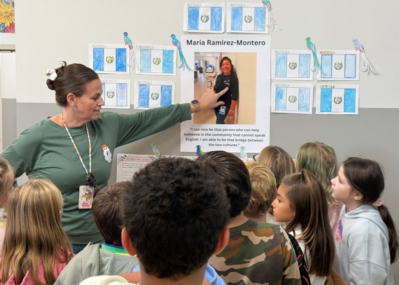Fifth-graders met with Maria Ramirez Montero, a local respiratory therapist who is originally from Guatemala. Ramirez-Montero said she sees herself as a bridge between two cultures and loves to be able to help those in the community who may not speak English. She encouraged students to find ways they too can help each other, their families and the community.