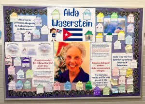 Aida Wasserstein shared her unique story with fourth-graders. Wasserstein first lived in Europe and spoke Yiddish before moving to Cuba and learning Spanish. When she moved to Florida, she learned English, and then attended college and law school in the United States. Now an accomplished bilingual author, Wasserstein was Delaware’s first bilingual lawyer. She also served for 21 years as a Family Court judge.