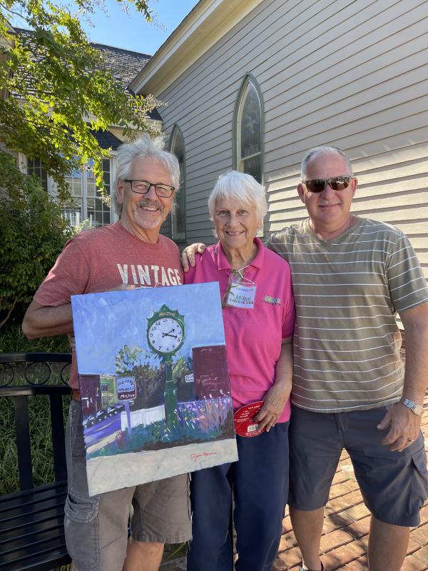 Milton Garden Club supporter Jim Vernicek was the top bidder in its recent silent auction for Jean Bowers’ “Time and Place” painting of the Milton town clock.