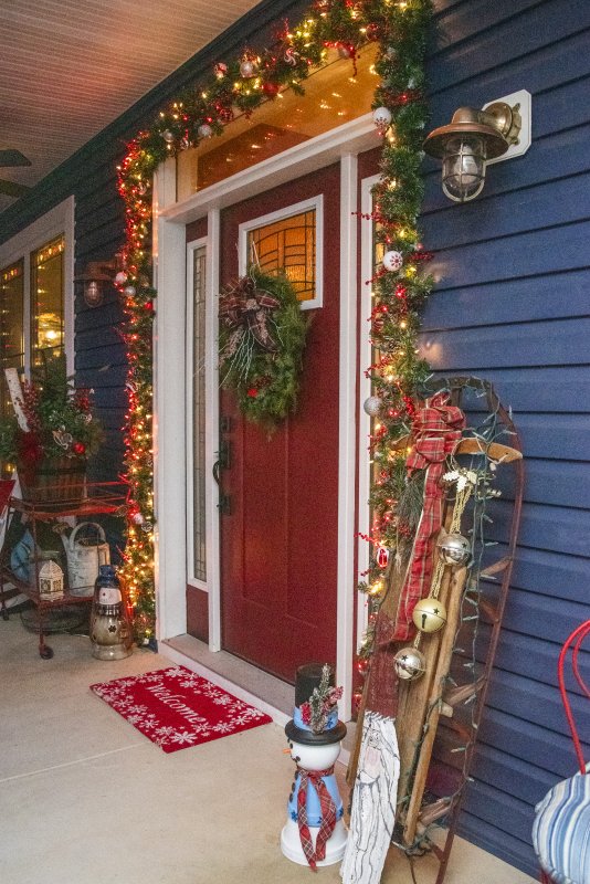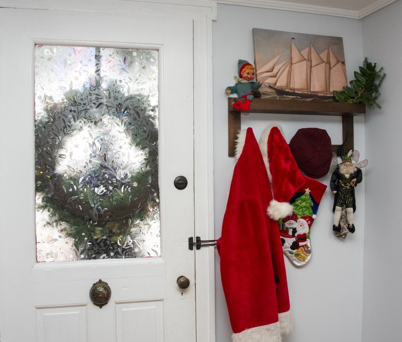 Vintage Christmas postcards adorn the interior doors at Lisa and Tom Malone’s West Shore Drive home.