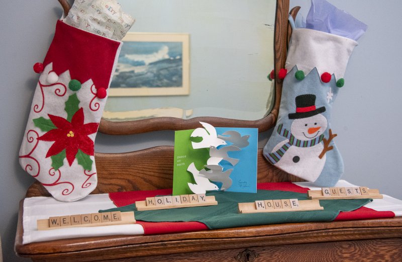A felted mouse watches over the gingerbread men on the table at Geri Ludlam and Connie Heindel‘s Hudson Road home.