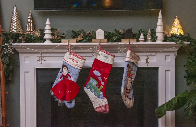 Kelly and Chris Cole have their stockings hung by the chimney with flair at their West Shore Drive home.