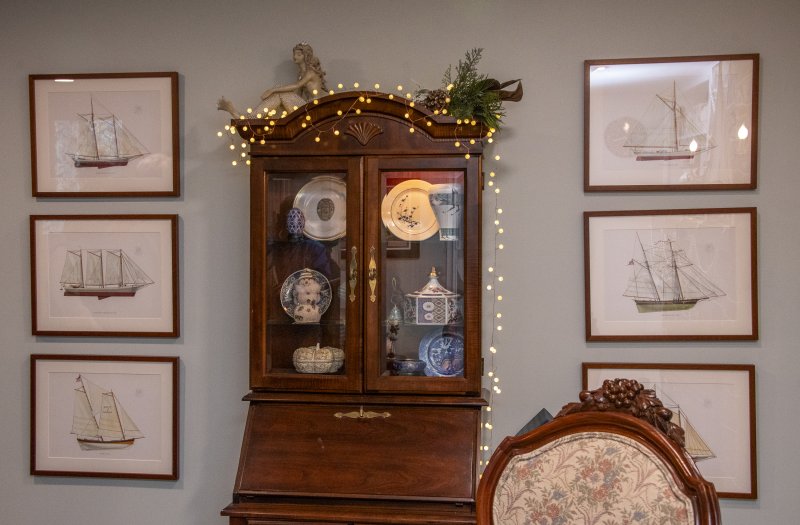 Marla and Tom Norton’s Union Street home boasts two fireplaces, and the decor incorporates artistic collections as well as a nod to sailing vessels.