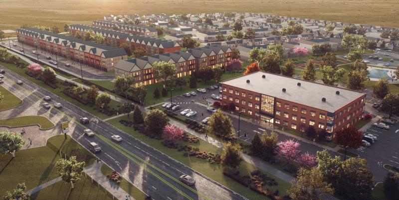 Plans also include sidewalks on all streets, a dog park, community center and pool, playground and sports courts. Density of the proposed development is 6.1 units per acre.
