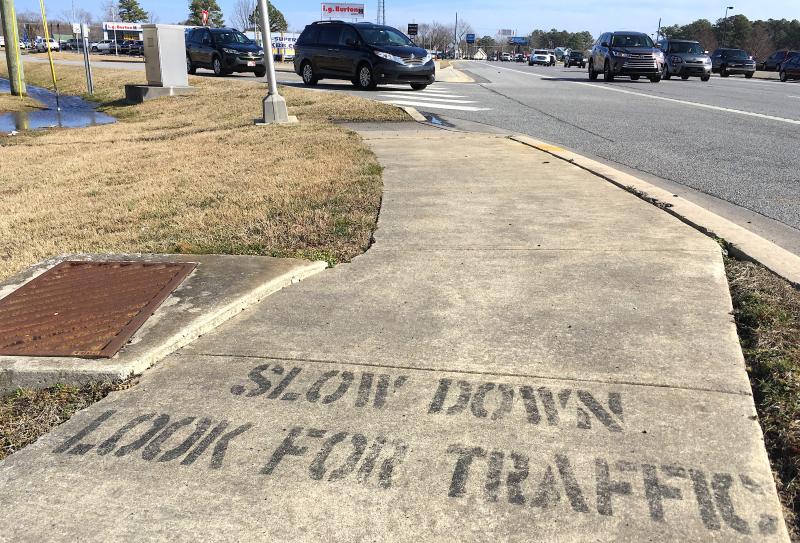 Last summer, in the name of bicycle and pedestrian safety, the local International Student Outreach Program convinced the Delaware Department of Transportation to allow high-traffic warnings to be painted along the northbound and southbound sidewalks of Route 1.