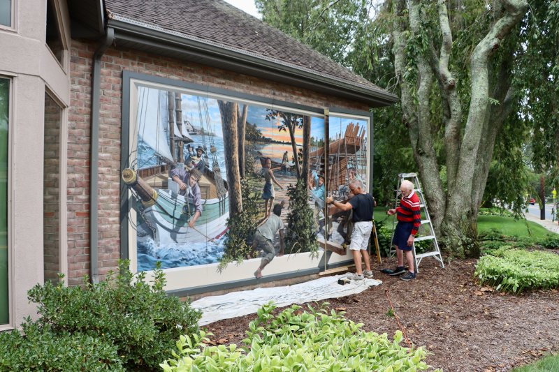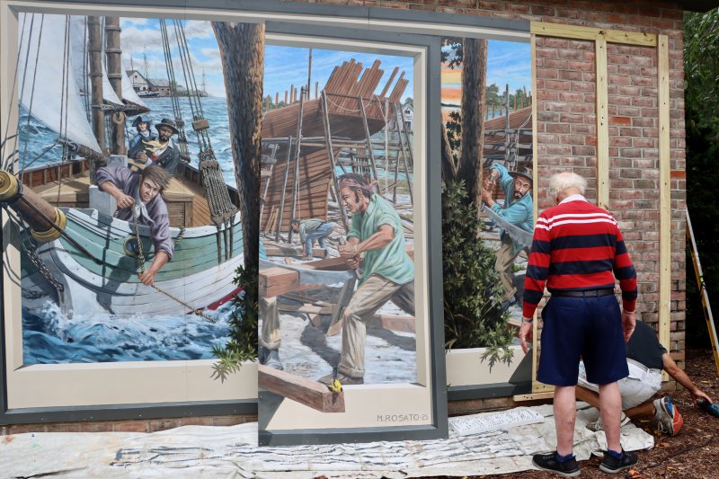 The mural depicts Lewes maritime history, the labor and industry that has taken place along the water, from creek to canal.
