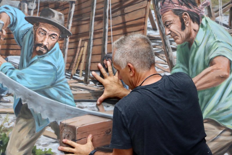 People admiring the mural immediately notice a deer, a ship’s bow and more jumping off the wall.