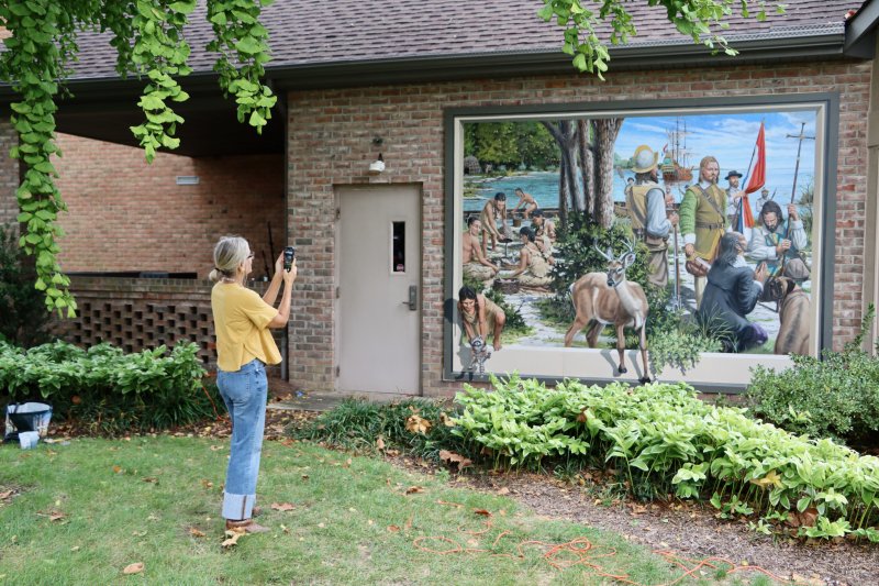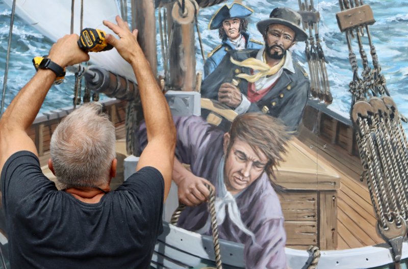 The mural moves, left to right, through history, from Native Americans, to the arrival of the Dutch in 1631, to the Underground Railroad to the city’s robust shipbuilding industry.