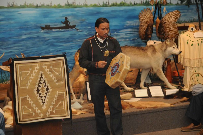 November is Native American Heritage month and the Nanticoke Tribe celebrated the month Nov. 24 at the Oak Orchard museum. The cold, windy weather kept the activities indoors, but the visitors still filled the main room for talks and dancing in between looking through the museum's vast historical Native American artifacts. Talking about music and tribal language is Urie Ridgeway.