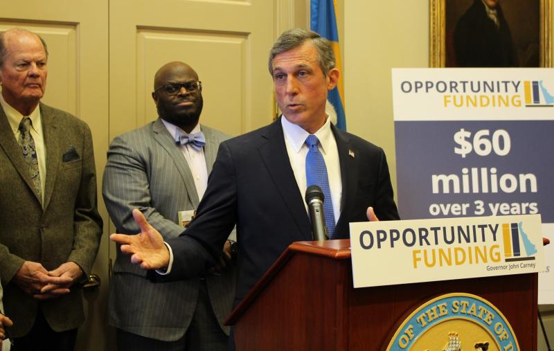 The Opportunity Funding Initiative announced Jan. 15 is part of Carney's fiscal year 2020 budget and uses a mix of ongoing and one-time funds to offer $20 million a year over three years to school districts. Districts will decide how to use the money in order to improve education for low-income and ELL students. District plans, which must be approved by Delaware Department of Education, could include hiring more reading and math specialists, counselors, trauma-informed training or after-school programs.