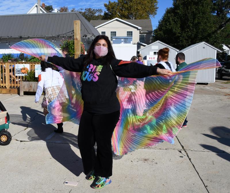 Rachel Webster, co-owner of Rehoboth Toy and Kite Co., waves to the large parade crowd. The company is the Rehoboth Beach Business of the Year.