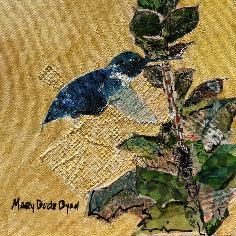 Dale Sheldon and Lesley McCaskill are also inspired by their natural surroundings. Sheldon’s acrylic, “Colors of Sicily,” and McCaskill’s acrylic, “View Across the Pond,” share local color and vibrancy that uplift and captivate. Cindy Beyer’s pastel, “Poppin’ to the Light,” vibrates with color inspired by a field of flaming-red poppies. Mary Bode Byrd’s acrylic painting, “FlyByrd,” is inspired by the delicacy and beauty of a hummingbird, and her desire to capture its wispy energy.