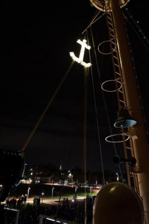 There had been a concern that the Lightship Overfalls would not be in Lewes for New Year’s Eve as there was a possibility that she would be in a shipyard for periodic maintenance. However, the foundation was not able to schedule a dredging contractor this fall to remove the shoal that had built up and was blocking the ship's access to the canal.