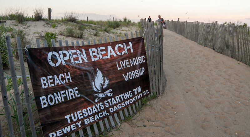 Open Beach is an innovative, contemporary worship service at 7 p.m. every Tuesday on the beach at Dagsworthy Street in Dewey Beach. It features contemporary Christian and popular music by local band Changing Tides, a bonfire, worship and s'mores.