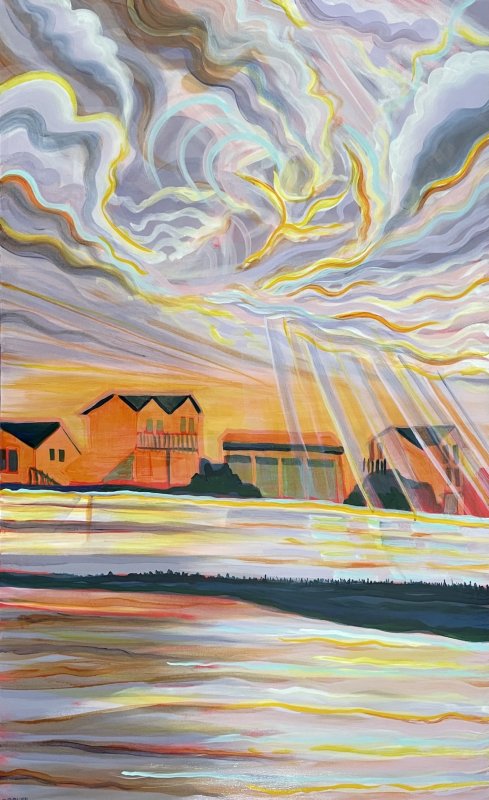 Jan Crooker is an artist and teacher who has been involved in the visual arts her entire life. She has art degrees from Toledo University and Penn State, and has taught at the Toledo Museum of Art, Penn State, Cal State San Bernardino, Moravian University and Northampton Community College. She has exhibited nationwide and is known for her colorful paintings. She has a studio in Bethany Beach and posts a painting daily on Instagram. Crooker’s style evokes early 1900s modernism, with her pieces featuring elongated horizons, abstracted trees and wispy waterways. Her acrylic palette embraces shades of lavender, ochre and azure.