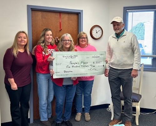 People’s Place representatives recently accepted a $500 donation check from Larry Linaweaver of Iron Valley Real Estate at the Beach.