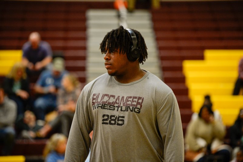 Top ranked - Milford heavyweight Greg Lockett is the top-ranked 285-pounder in Delaware high school wrestling. He wears a T-shirt that says “Buccaneer Wrestling 285.” He’s built like a road grader ready to flatten an opponent, which he did at the end of the Cape match by pinning Javier Morales in 2:51 to earn his 100th career win. Greg is described as the nicest kid by those in Milford who know him well. He was presented with a banner by the boosters. I was hoping coach Don Parsley and Lockett would turn around from the home stands to the far side of the gym so I could get a photo or maybe ask them where I can get a T-shirt that reads “Old Guy Cape 285.”