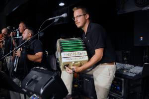 On Saturday night the festival organizers took over a small corner of the dance floor for a group photo. Shown in back (l-r) Matt Mularz, Mike Charney and John Miconi. In the middle, Janice Lochner, Tom Maszczenski, Dan Roy, Festival Promoter Mike Matousek, Ann Marie Matousek, Carole Miconi, Dave Deslauriers and Paul Ziemski. In front are event Co-Producer Mike Ziemski and Founder Gil Ziemski. BY STEVEN BILLUPS