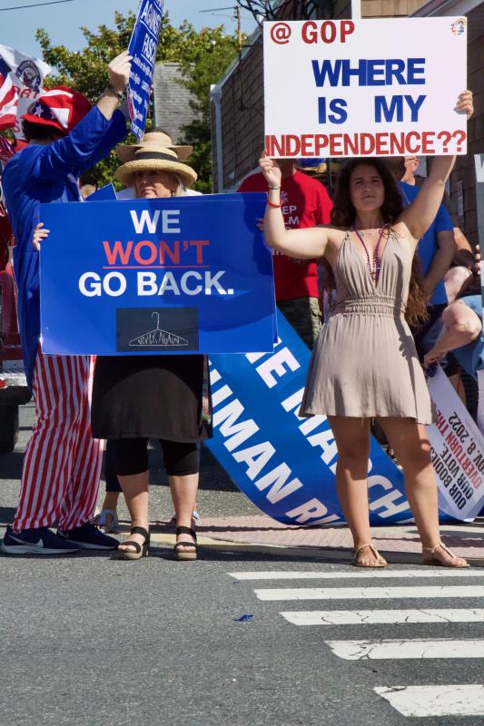 Two separate pro-choice groups organized July 4 to demonstrate their disapproval of the U.S. Supreme Court’s decision to overturn the 1973 Roe v. Wade ruling, thus eliminating the constitutional right to abortion.