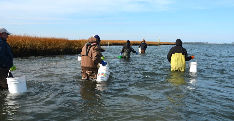 Krell said the oysters came from three farms – Arrowhead Point Oysters, Nancy James Oysters, Delaware Cultured Seafood – and there were 55 bags of spat on shell stocked, which contain an estimated 25,000 individual oysters, said Krell. There were also about 30,000 seed oysters from Arrowhead Point, he said.