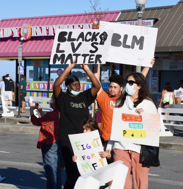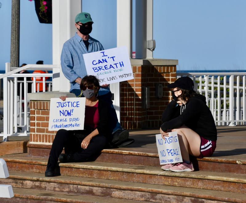 Protesters marched at the Bandstand in Rehoboth Beach June 1, demanding justice for African Americans who have died at the hands of police. About 50 people carried signs and chanted “No justice, no peace,” as one protester read the names of people who have died in police custody.