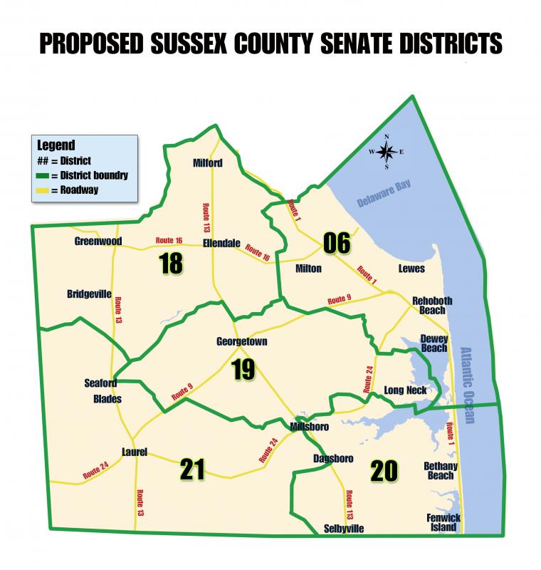 “One end, transplants and liberal social issues and the other end, conservative influence and local lineage. It is that end that dominates the district’s culture, morals and customs,” she said. “The proposed Senate map of District 6 abandons the gay community that has settled outside of incorporated Lewes and Rehoboth.”