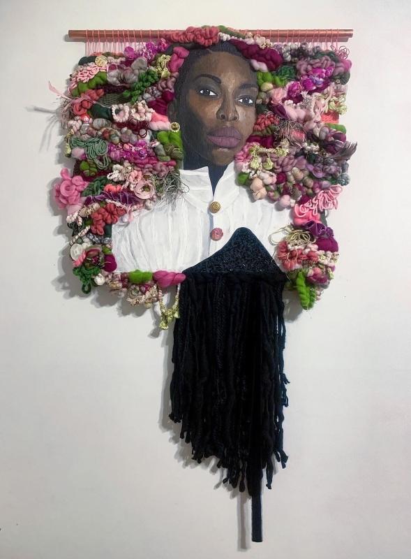 Multimedia artist Phillips works in paint and fiber, combining the two to give life to each artwork, filling it with vibrancy and texture. The pieces' varying color palettes were chosen to give the viewer a different experience with each work, offering subtle details to highlight each material and emphasize how they flow together. Connecting paint and fiber in her art allows Phillips to explore many sides of herself, from her expressiveness to her meticulous, organizational nature.
