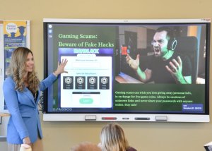 The lesson focused on helping students understand the differences between fraud and scams, and why recognizing them is essential in today’s digital environment. Students explored common scams that often target children and teens, including fake contests, phishing emails and text messages, gaming-related scams and influencer impersonation schemes. Through a “fake or real” message activity, students practiced identifying suspicious online content and learned how to respond safely.
