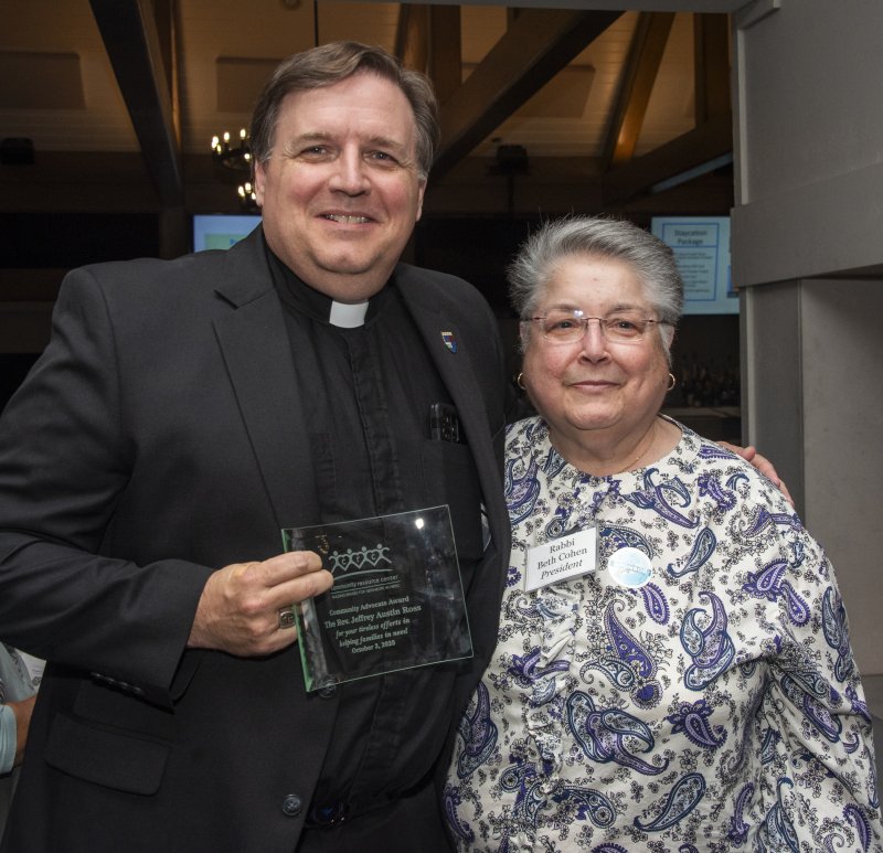 The Rev. Jeffrey Ross, rector and pastor, St. Peter’s Episcopal Church in Lewes, is flanked by his mother Janet Ross, left, and Rabbi Beth Cohen, board president of Community Resource Center.