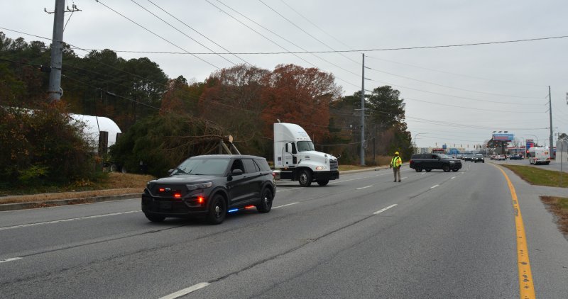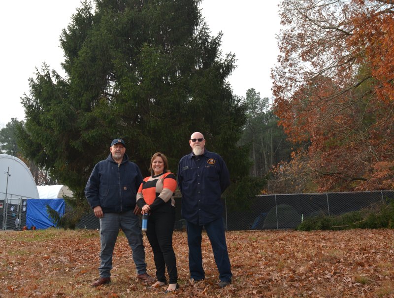 This year’s tree, donated by the state, was located off Route 1 next to the Tharros Village and Delaware Department of Transportation salt barn. The property is the former home of Delaware State Police Troop 7.
