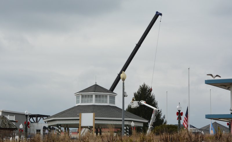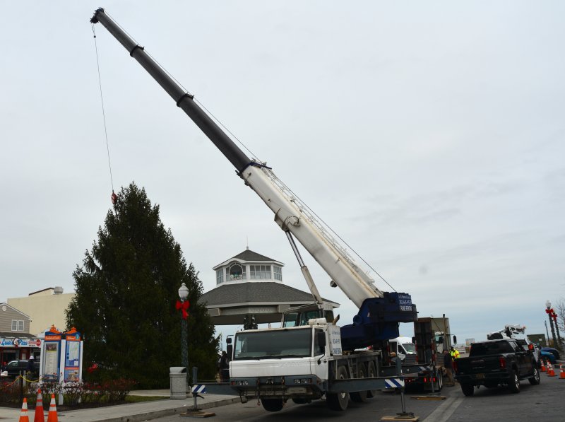 The tree that will be used for Rehoboth Beach’s annual tree lighting and holiday sing-along was installed Nov. 20 at the Bandstand.