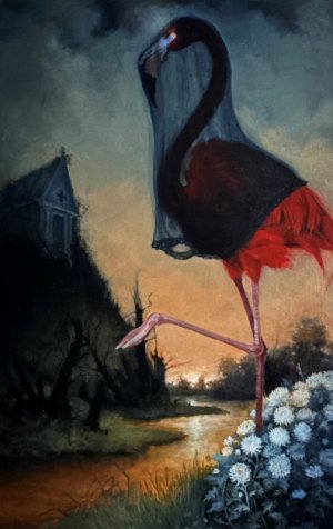 Kirschner’s surreal inner wasteland is the subject of his exhibition By-Chance, which will be on display in the Ventures Gallery. Kirschner gathers a series of individual words that relate to his muddled and chaotic psyche and randomly selects a grouping of three of those words to be the inspiration for each painting. The result of this is a series of surreal, otherworldly oil works. This process helps Kirschner explore the depths of his mind and tell stories that only occurred to him with the help of his subconscious and fate. Each image is accompanied by its three-word phrase, giving viewers context for what is depicted on the canvas in front of them.